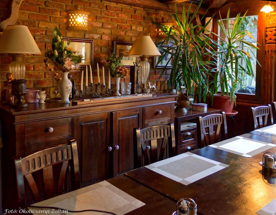 Az Udvarház Étterem belső miliője is árasztja, hogy nem olyan helyen járunk, amiből tizenkettő egy tucat. Kellemes barátságos, elegáns a környezet. Faragott rusztikus oszlopok, évszázados fagerendák, vaskos tálalószekrény, rajta porcelán dísztárgyak, régi varrógép, nehéz faszékek, kandalló, rusztikus padlólap. Az étterem hangulata elragadó, szívet melengető. A meghittséget erősíti a kovácsoltvas díszítésű pajtaajtó és a csinos terasz.