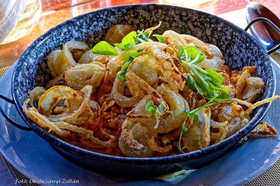 No, mi nem ettük végig ezt a gazdag ételsort, hanem a tulajdonos Laczik Zsuzsanna ajánlatára a lapon sült