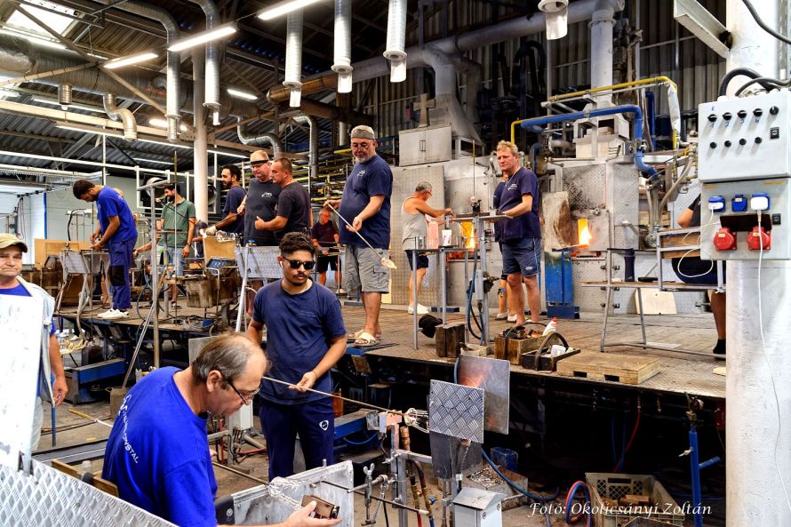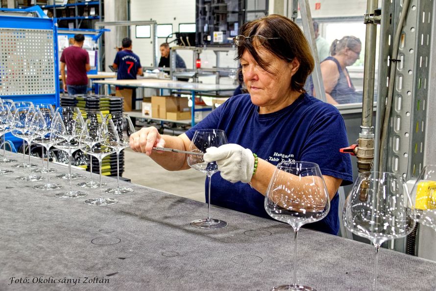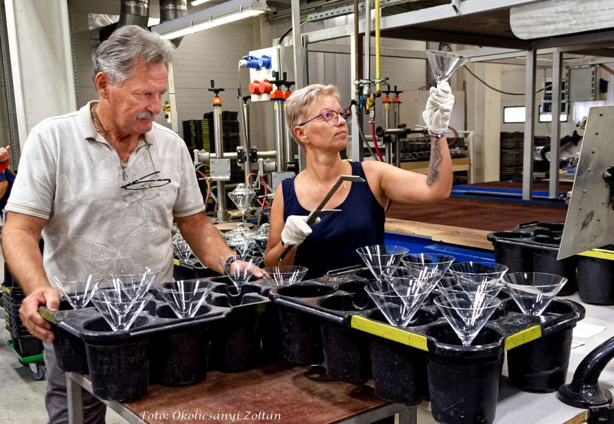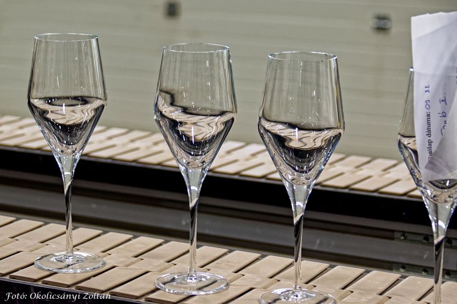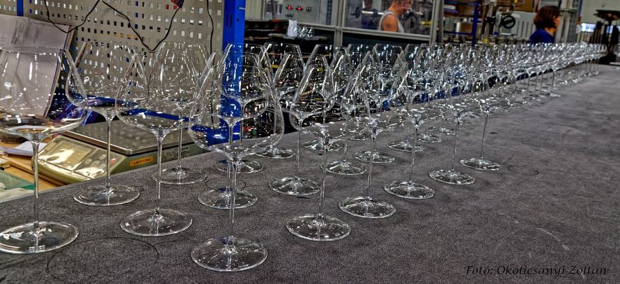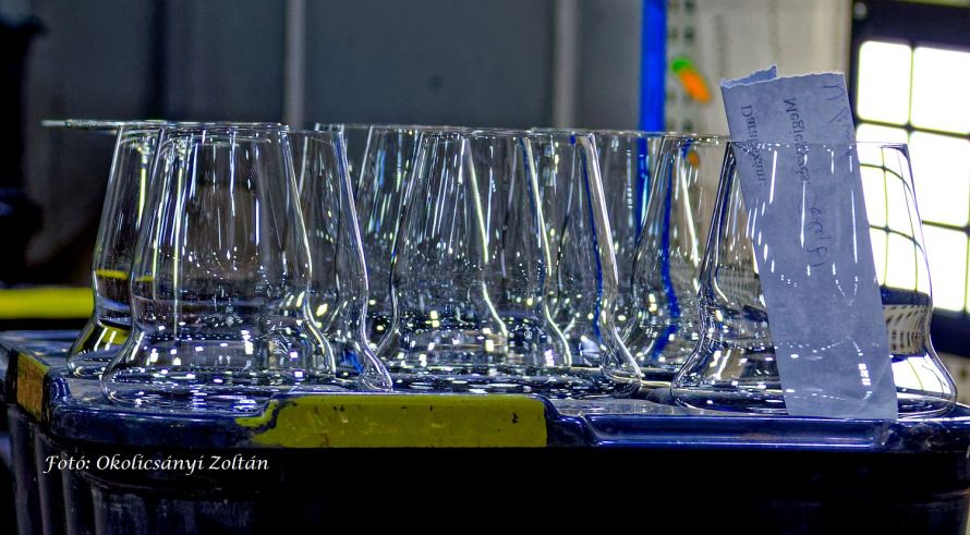 Közelről láthattuk tehát a 4-5 éves gyakorlatot igénylő kézi gyártást, a részletekre való odafigyelést, valamint azt, hogyan válik az ólommentes alapanyagból időtálló, elegáns kristálytermék. A prémium kategóriás termékcsaládokat: Brilliant, Joy, Sphere, Pearl, Sophia, Evelin, Elegance, Balance, Lyra, Lady, Tokaji Aszú Glass és másokat a kemencében megolvadt üvegből legalább 15 ember alakítja, formázza, ellenőrzi.