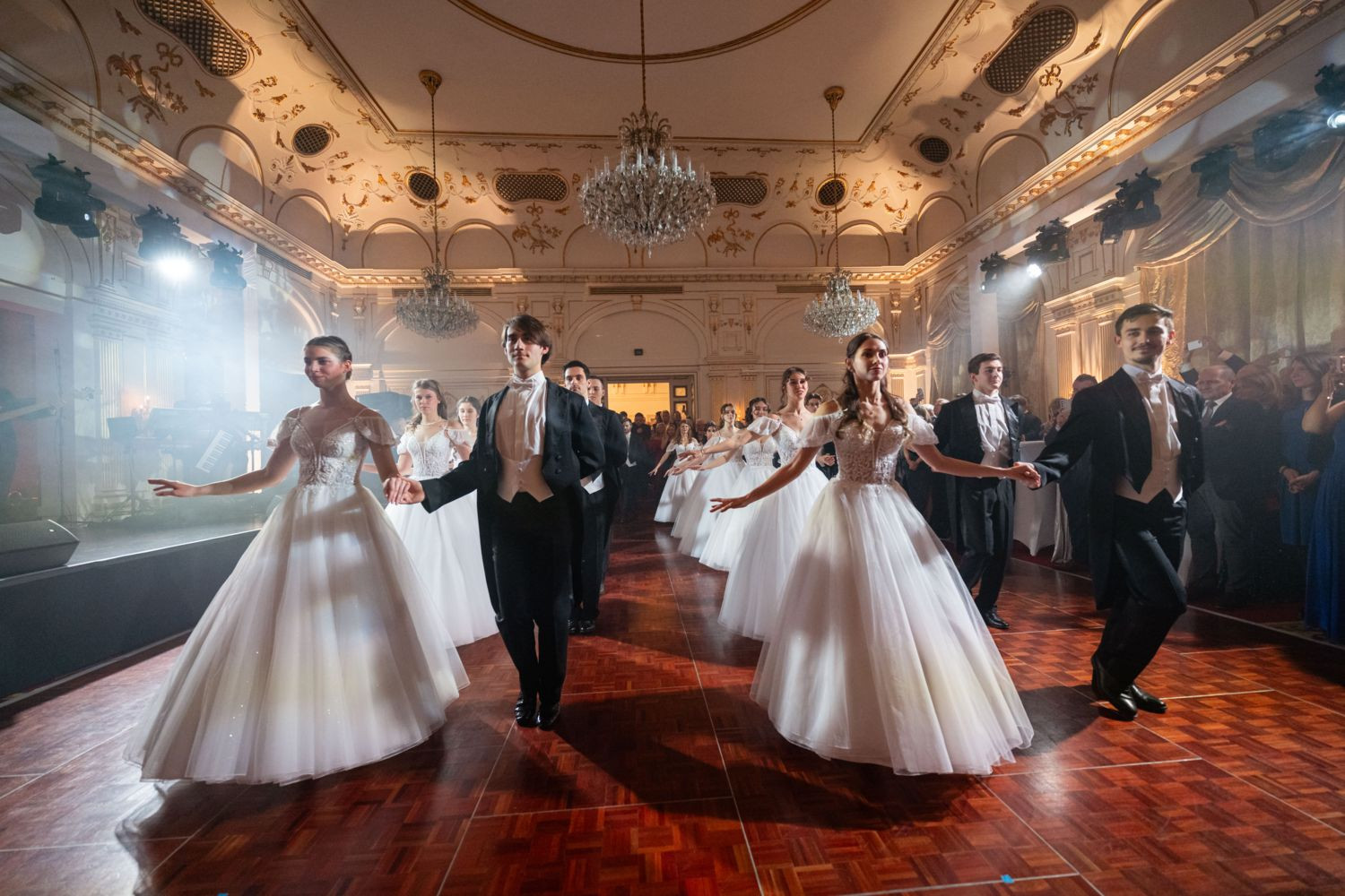Az est egyik legerősebb pillanata volt, amikor megjelent Gundel Károly hologramja, a megnyitót pedig Latinovics Zoltán hangja tette emlékezetessé. A múlt ikonikus alakjai így természetes módon kapcsolódtak a jelenhez – nem emlékműként, hanem élő gondolatként. A táncparkett már az első bálozók után gyorsan megtelt: közel ötven párral indult el az este, rövid időn belül pedig egyértelmű lett, hogy a terem megtelt, a hangulat felszabadult. A nyitótánc előtt egy rövid, mégis látványos show-műsor – légtornászokkal és mirror-táncosokkal – adta meg az est lendületét.