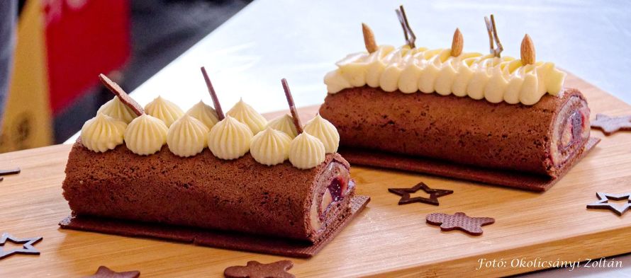 Ipacs Balázs cukrászati tanácsadó, - a DEBIC, mint a karácsonyi fatörzs verseny hivatalos, kiemelt támogatójának képviselője - a sütemény történetéről mesélt, majd kivetítőn bemutatta a hozzávaló, több tucatnyi alapanyagot. Mint kijelentette, bízik benne, hogy a bejgli mellett a fatörzs lehet idén az új karácsonyi sláger.