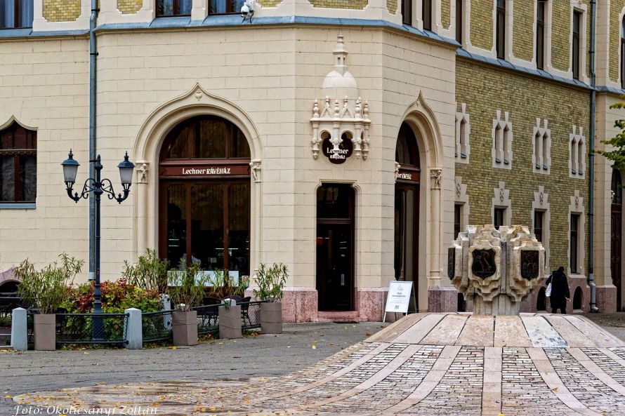 A városházi látogatás után beülünk egy gyors kávéra az épület sarkán kialakított, a régi magyar kávéházi hagyományokhoz visszanyúló Lechner Kávéházba.