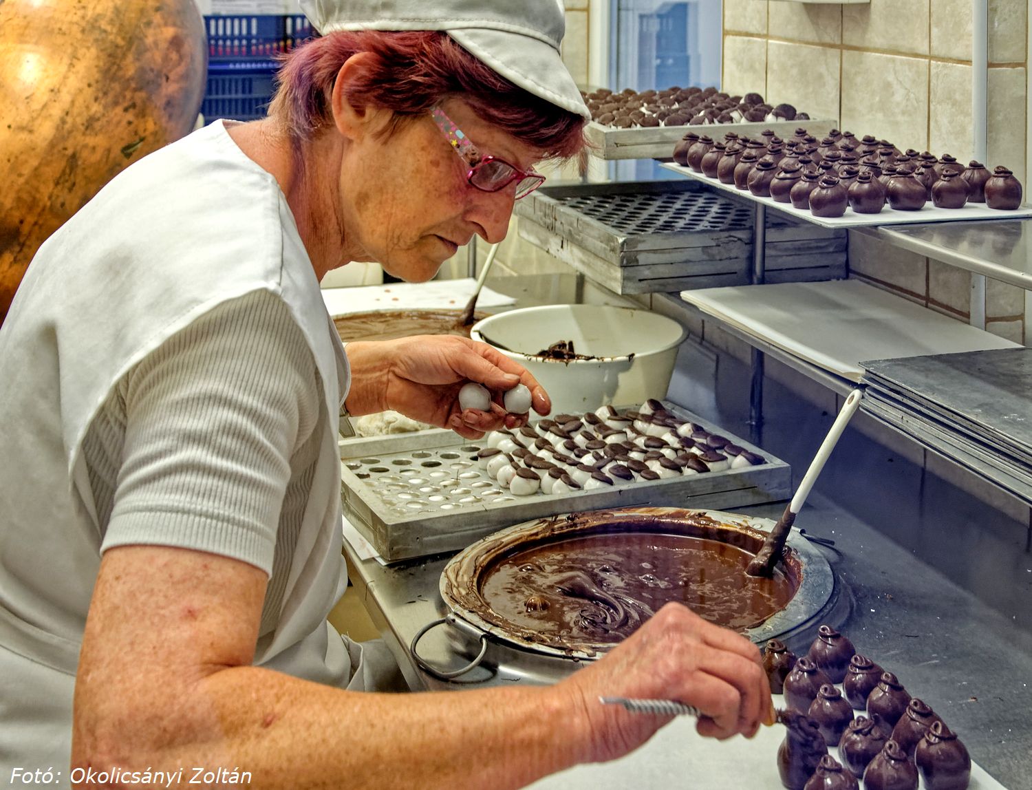 A vendégek nagy üvegablakokon keresztül követhetik a konyakmeggy-gyártás folyamatát. Kizárólag helyi meggyet használnak, amit 80 százalékos szeszben érlelnek, majd fondantba és 35 százalékos csokoládéba mártanak egyenként. Óránként 2000 darab, 5 kg készül ezzel a hagyományos módszerrel.